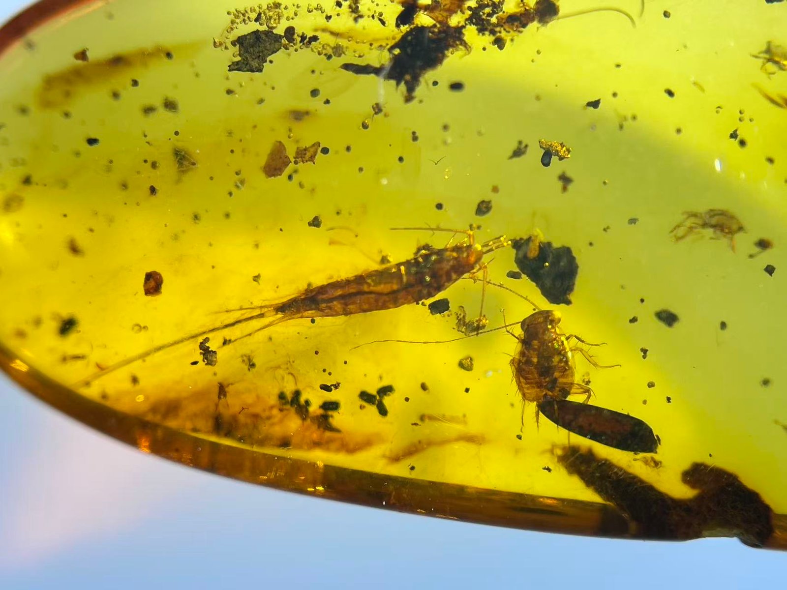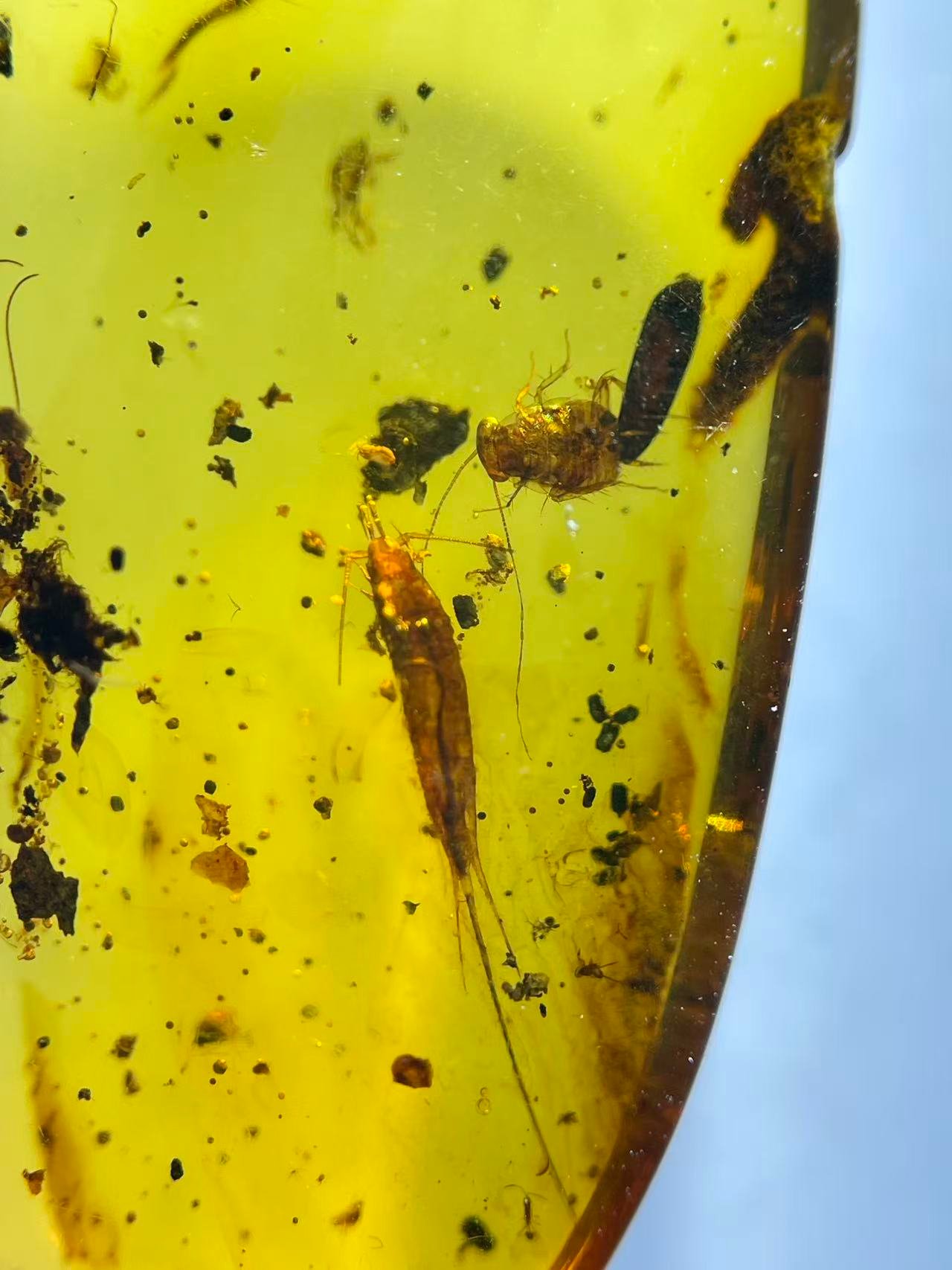 Bristletails and Cockroach Nymphs ,Burmese amber, 100% natural amber, insect amber