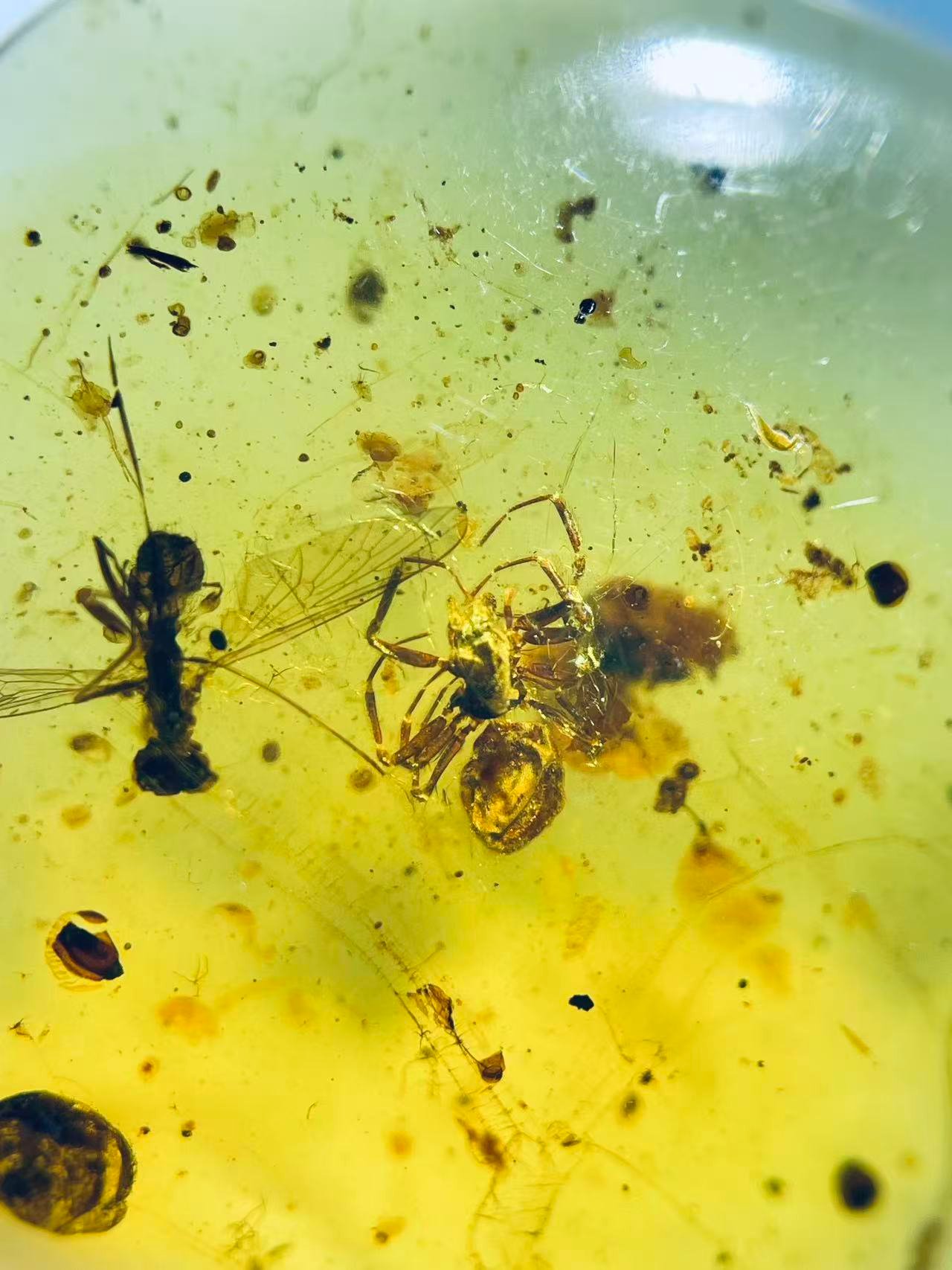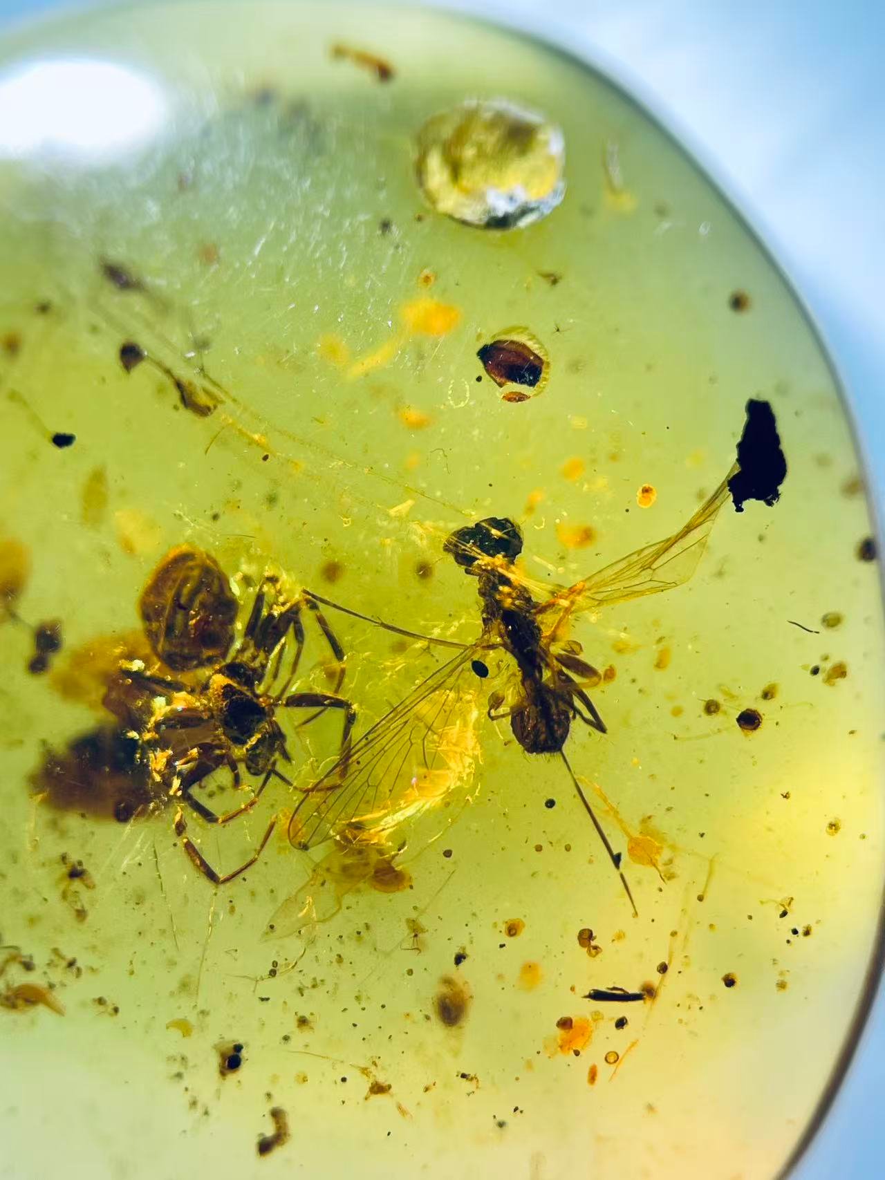 Spider Preying on a Bee,Burmese amber, 100% natural amber, insect amber